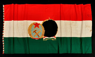 A II.vh. után a zászlón megjelentek a szocialista jelképek. 1949-1956-ig a magyar hagyományoktól teljesen idegen , Rákosi Mátyás nevéhez köthető címer került fel rá- Ez vezetett az 1956-os forradalom során a lyukas közepű zászló megjelenéséhez, mivel a forradalmárok kivágták a Rákosi -címert a zászló közepéből- Ez a zászló lett a forradalom jelképe.