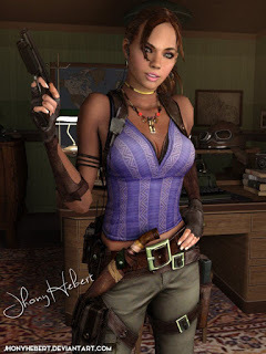A katonás hősöktől eltérően van egy szereplő aki nem zöldes színekbe, hanem kifejezetten barnába és feketébe bújik, ez Jake, Albert Wesker fia.