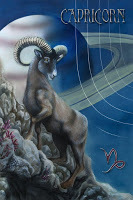 A téli napfordulót is öregedő férfi jelenítette meg, rajta prémmel szegett bőrruha, a derekán öv, azon 12 csillag, s csatként a Bak jele. Jobbjában kecske, baljában glóbusz, melyet csak egynegyed részben világít meg fény. Bokáin szárnyakat visel, egy fehéret és három feketét.