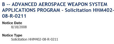 Researcher Keith Basterfield located a Defense Intelligence Agency 2008 call for proposals for the Advanced Aerospace Weapon System Applications Program (AAWSAP). This may be among the most promising developments to date in untangling the fishing line knotted by To The Stars Academy (TTSA) and its less than clear personnel.