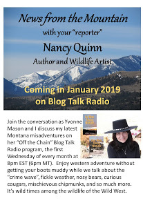 The show airs live the first Wednesday of each month. The next show will be February 6, 9 pm Eastern time. If that is in the wee hours for you, you may listen at this link. The shows are recorded and you can enjoy them at your convenience. It's wild times, among the wildlife... of the wild west.