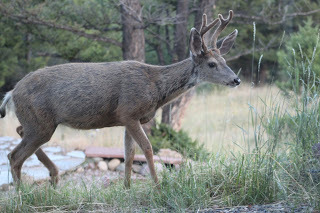 This is the fellow who keeps eating my roses. When I sit on the porch near him he behaves, until I'm not looking, then he eats my flowers. I keep asking him to refrain from munching the blooms, but he is a cheeky guy!