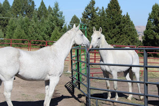 An opportunity presented itself, and we adopted an abused Arabian horse. His name is Star, and he has and injured hip and drags his left hind leg. The vet and the farrier are on the way, and I will be giving you updates on his progress. I'm also planning a video of his story. Here he is meeting Wilson. Star is on the right side of the corral panel, he looks a lot like Wilson, and has a dear personality.