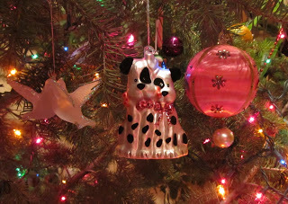 Since this was his initiation into our tradition, I made a special effort to show him each ornament as we hung it on the tree. As always, I explained the stories behind them, hoping that in time my daughters would have them committed to memory. Kobi listened intently while I recited their individual histories reflecting the places we have lived, the birth of each child, the friends we have known, and the adventures we have shared. First came the shiny ceramic dog named Snoopy from the “Peanuts” comic strip, with a candy cane in his paws, given to me by Kathy Ericson in the third grade. It’s the only ornament I ever received as a child, and I cherished the sentiment behind it, though it had to wait many years before it appeared on a tree. Mother was very strict about Christmas décor; everything had to match, so our handmade or gifted ornaments never did pass muster. After I was grown, Snoopy always had a place on my tree. Next came the glass candy my husband gave me when we first married. Like so many couples starting out, money was tight, but Bill thought it important we have an ornament that was uniquely ours that first Christmas together. Kobi licked his chops when I showed it to him. Sorry boy, it isn’t edible. Oh, but here’s one he can identify with, my personal favorite, a hand-blown glass figurine of two Dalmatian puppies. I bought it because it reminded me of the Halloween when both my girls, still very young, dressed as Dalmatians. The image of those smiling little faces will never leave my memory.