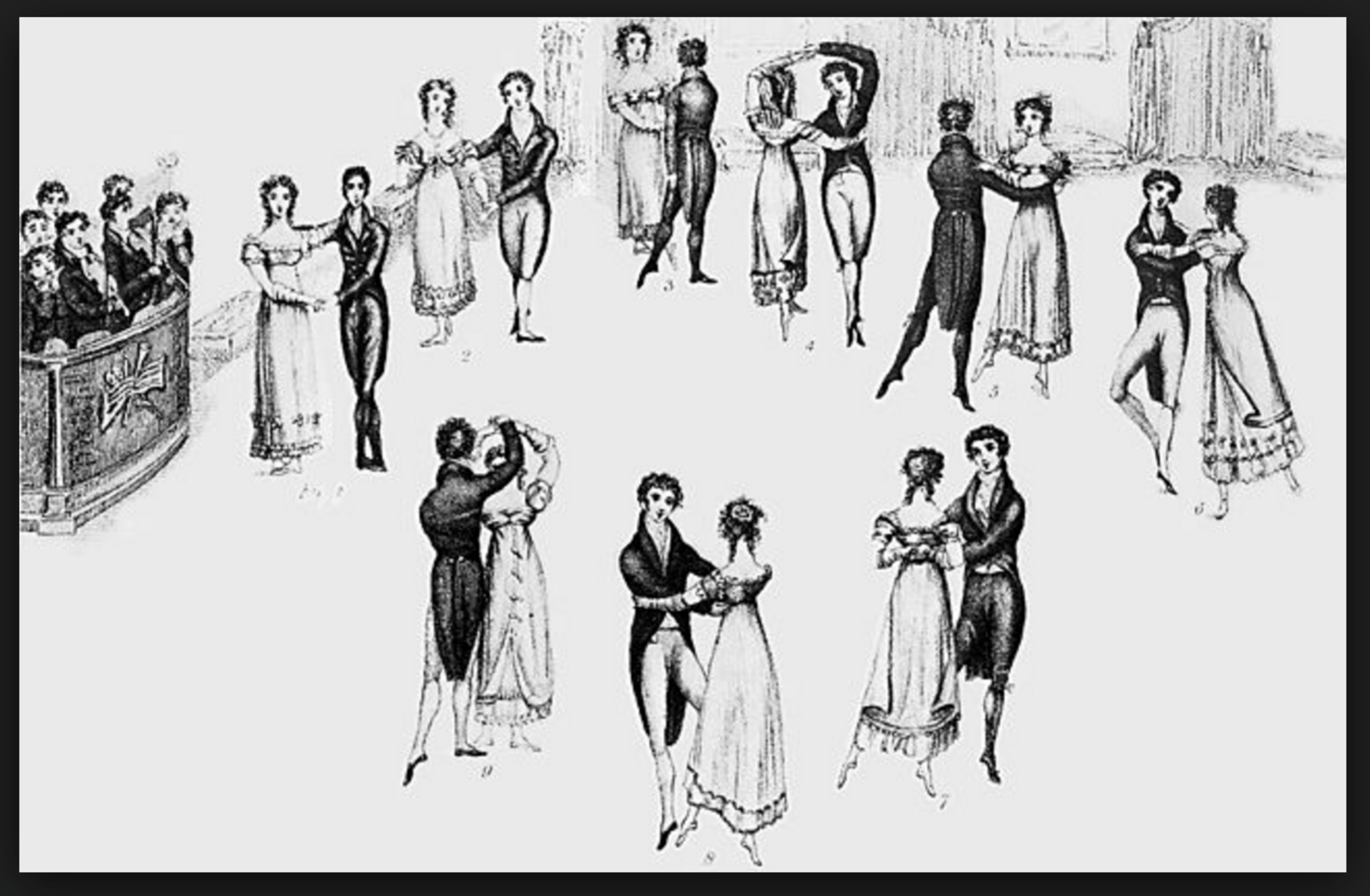 Napolean’s army is said to have been responsible for spreading the waltz across Continental Europe from Germany to Paris. The dance later spread to England by 1815 and then finally across the Atlantic to the U.S.