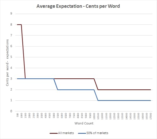 That there are far more markets paying a little than a lot, or that more markets are interested in something that can be read in the time it takes to drink a mug of coffee than grow the beans shouldn't be a surprise to anybody who dabbles a toe in this unforgiving world. Perhaps the more interesting point is that there are more 8c per word markets for something 1000 words long than 1c per word takers for something 8000 words in length (which has a lot to do with why nobody’s seen that Writers of the Future finalist, even at a token rate).