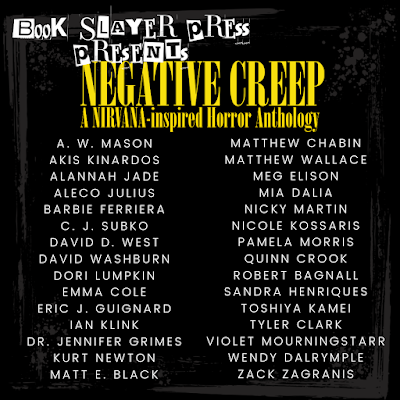 Lastly, mid-November saw an acceptance, like the first of the year, for an anthology based around an artist's music. Unlike January's Ghost-inspired anthology, I am familiar with the band in question - Nirvana - even if not with Help Me I'm Hungry, the song I associated Science Project, my sci-fi horror with on the basis of title alone. It'll appear in Bookslayer's Negative Creep anthology later this year.