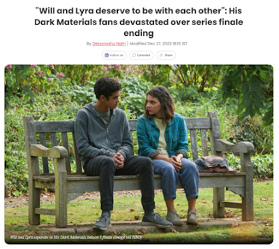 Okay, so I'm about four months behind the curve - but isn't speculative fiction about the future meant to comment on the present, so why can't my blog post in the present comment on speculative fiction about the future from the past? - but I have a couple of things to say about the ending of the BBC/HBO adaptation of Philip Pullman's His Dark Materials.