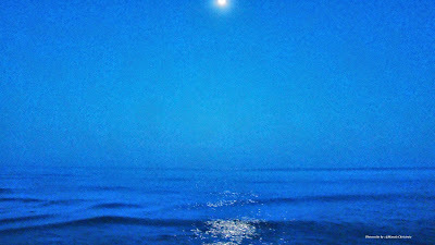 Născută la mare fiind, ani de zile am încercat să reuşesc să suprind aşa o poză. Albastrul acesta "perfect" în care se reflectă luna, oglindind sclipiri de diamant. Abia după ce am reuşit să accept cine sunt eu, fără să mă judec sau să încerc să mă incadrez într-un tipar acceptat de societate, am reuşit să surprind acest albastru. Mai am şi alte poze, puţin neclare însă, aşa că am ales să pun aceste două poze. Pentru mine pozele acestea sunt mai mult decât poze, au legate de ele o istorie : povestea mea. De atunci văd lumea în alte culori. Mai târziu , in luna iunie, nepoata mea mi-a confirmat că vede şi ea schimbarea şi acceptarea. La Neptun, la malul mării s-a uitat direct în ochii mei şi mi-a spus : "Dă-ţi părul din ochi, vreau să-ţi văd lumina!" Nu vă puteţi inchipui ce a însemnat asta pentru mine.