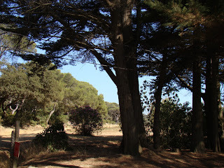 Camera era de fapt un studio amenajat pentru 4 persoane, cu terasa si bucatarie proprie ( de fapt o mica bucatarie, dar asta e ceva normal in Franta). Se afla la capatul padurii, langa farul de pe insula. Pana sa ajung acolo am avut parte de prima "aventura " pe insula , cu pro miprietarii. Sotia, o femeie vesela si sociabila, m-a sfatuit sa nu ajung la pensiune singura, de prima data ci sa-l astept pe sotul ei sa ma conduca cu masina, asta dupa ce m-a asigurat ca nu voi reusi sa-mi petrec week-endul singura asa cum doream eu, pentru ca e varf de sezon si e multa lume pe insula (erau multi, din diferite colturi ale lumii). Sotul ei se lasa asteptat , asa ca am pornit-o agale prin padure, pe carare.