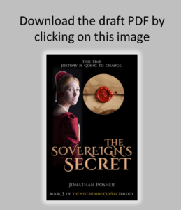 The curent draft of The Sovereign’s Secret is immediately available for a limited time for beta readers – advanced copy readers who are invited to read and comment on the book prior to publication.
