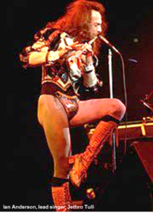 I went to see the rock group Jethro Tull perform on several occasions when I was a lot younger. The front man, Ian Anderson, would stand on one leg playing the flute, which was fairly impressive, but what really drew the eye was the glittering codpiece he wore while doing so.