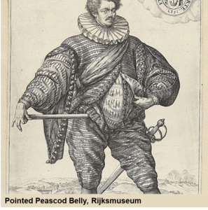 By late 16th century the cod piece had had its day and was replaced by the well padded stomach, known as a peascod belly; the codpiece beneath gradually shrinking in size.