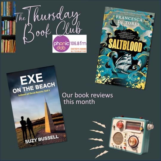 We reviewed two books: Saltblood by Francesca de Torres and our book by a local author was Exe on the Beach by Suzy Bussell.