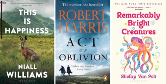 The books reviewed were This is Happiness by Niall Williams, proposed by Su; Act of Oblivion by Robert Harris, proposed by Jason; and Remarkably Bright Creatures by Shelby van Pelt, proposed by Jonathan.