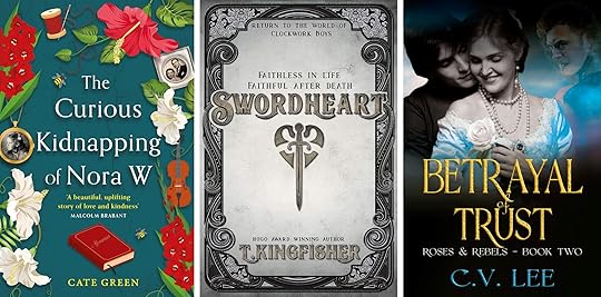 https://jonathanposnerauthor.com/wp-content/uploads/2023/09/TBC-Show-1-21-09-23.mp3The books reviewed were The Curious Kidnapping of Nora W by Cate Green, proposed by Cathie; Swordheart by T Kingfisher, proposed by Angela; and Betrayal of Trust by C. V. Lee, proposed by Jonathan.
