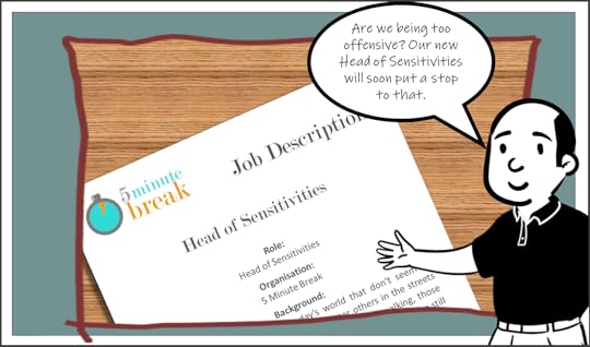 We at 5 Minute Break have never shied away from jumping on a passing bandwagon. So, in view of the current need to avoid offending anyone, and the trend towards revising classic literature to fit with today’s modern sensibilities, we have decided we need to appoint a Head of Sensitivities to review our articles and highlight any content that might cause offence.
