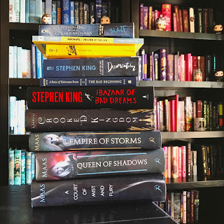 I was a little bit bullied {lovingly} into reading this series by my friends. I had been hesitant because of the whole "there are sex scenes in this series" thing. If you've followed me for any amount of time, you should know that my preference is middle grade or adventure-focused fantasy. But since I have really enjoyed Sarah J. Maas' other series, I figured I might as well, so I could shut them up {lovingly}. And I have to say, I really enjoyed the story. There was a small sex scene in this book, but there's like a whole chapter in the next one, so do be aware of that going into it. That being said, the awkwardness that I felt while reading {okay, listening, because Audible is about the only way I get to finish a book these days} those scenes was far outweighed by the excitement and anticipation and anxiety and concern and a bunch of other emotions that the rest of the story elicited in me. This first one is a pretty clear and clever re-telling of Beauty and the Beast, with a tad {I'm underplaying that} more darkness to it. While the second goes in its own direction, as there's not a Beauty and the Beast 2 to pull from. {That I know of}. I really like Feyre's journey, and I find certain relationship scenarios to be very well written by Maas {no I'm not talking about the sex scenes. I won't say those were bad but I can't claim they were anything but awkward for me personally so go ask someone who likes that type of detailed scene to give you a better idea about that}. The one thing I have started to notice in all of Maas's books that, at this point, is actually driving me a bit crazy and I can't stop wondering how NO ONE in the editorial team has picked up on it, is her overuse of "barking" to describe things. That is really my only complaint. Just like half as many uses of that would have been great. Maybe the next two books someone will catch it before production...