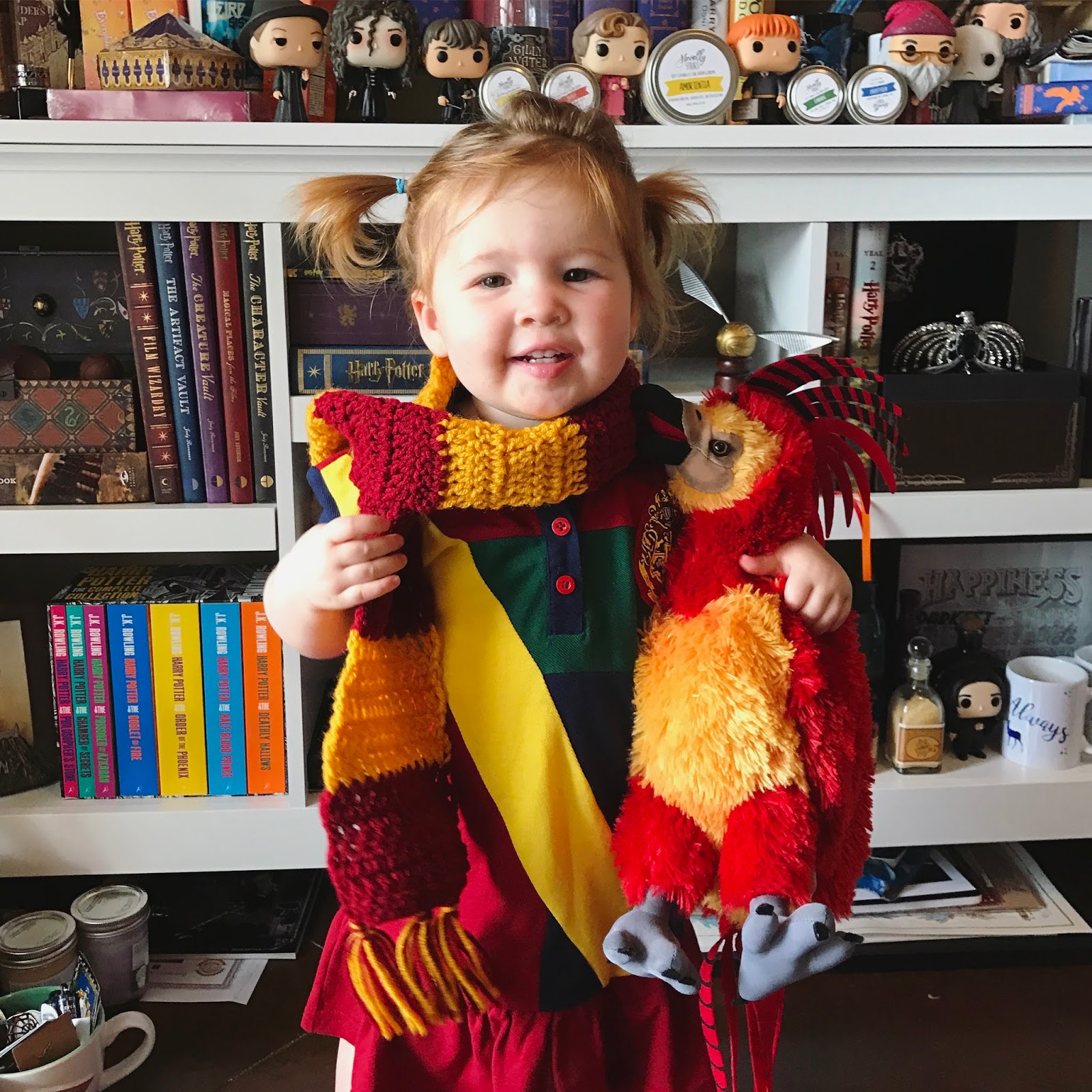 My favorite picture I've taken of her. Ah, the power of bribery.Also, I have discovered that Madeline, though stubborn, listens to reasoning quite well, and responds to bribes better than expected. It started when I was trying to get her to pose in a scarf in front of my Harry Potter collection shelves. Scarves are one of her no-nos. She refuses to wear them. But we got one as a sort of collab/gift and I needed to make this picture happen. But she wouldn't stop screwing with my shelf of Honeydukes candy. She was especially enamored by the Bertie Botts Every Flavor Beans. So I saw an opportunity and I took it. "Madeline," I said, grabbing her shoulders and looking her in the eyes. "Do you want to eat these?" I held up the beans. "Yes!" She told me. "Okay," I said. "Then I need you to put this scarf on for me and stand right there. If you do that, then I will give you a bean*, okay?" I wrapped the scarf lightly around her neck and stood her in front of the bookshelf. "Yes!" she said. "Just do this for me and I'll give you a bean!" And it worked. She not only posed for me, she improvised {remember, she's not even two yet} by picking up props and actually saying cheese when I told her to. Yey for bribery!!