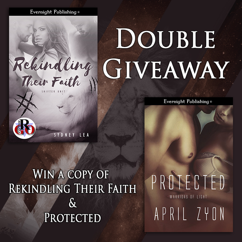 It's release day for Rekindling Their Faith [Shifter Unit 1] and I've teamed up with the amazing April Zyon to do a giveaway for our new releases. Each link below will take you to each book for your chance to win a copy!