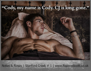 Blurb:Cody is running from the ghosts of his past. Will Megan's love be enough for him to make a stand?With his stalker behind bars, former boy band singer CJ Taylor is starting a new life. He’s bought a house in a small Vermont town, and taken back the name he was born with. Two years have passed since he was last in the public eye and as Cody Brennan, he’s finally feeling safe. Desperate to find some peace, all he wants is to connect to the music in his head, write new lyrics and forget the tragedy in his past.What he doesn’t count on is meeting Megan. From her amber eyes to her tempting smile, she is everything he thought he could do without, the very thing he promised himself to avoid. But he’s thrown into her family and her life, and suddenly he’s found a place he wants to stay.Megan Campbell is horrified when a stranger, covered in blood, collapses in her shop. When that same stranger, wild and angry, abruptly becomes someone very different, it’s not her safety she is worrying about, it’s her heart.Megan’s first instinct is to tame the powerful attraction she has to this stranger, but very soon desire becomes something more. Between them can they find the words to make things right? And can they stay safe long enough to fall in love?
