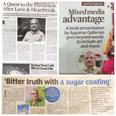 “The purpose of the book (Songs of the Mist) is to reach out to the young generation, who sadly do not relate to our rich culture and heritage, says Shashi, Author of the Book, who admires young people like the recent recipient of Fields Medal Manjul Bhargava.” – Nandhitha