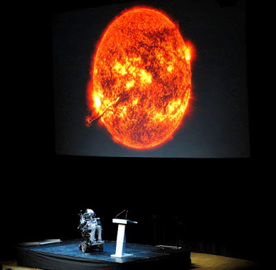 Stephen Hawking holding a public lecture at the Stockholm Waterfront