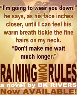 "Loved Raining Down Rules!!! Raining Down Rules is a captivating book with an incredible story. It is very emotional and has lots of drama, but also very sexy scenes. I loved that the story was told from different POVs. B.K. Rivers wrote a fantastic book, with an amazing story and awesome characters. Raining Down Rules is a fast and easy read that you'll not be able to put down. can't wait to read Jordan's story!"