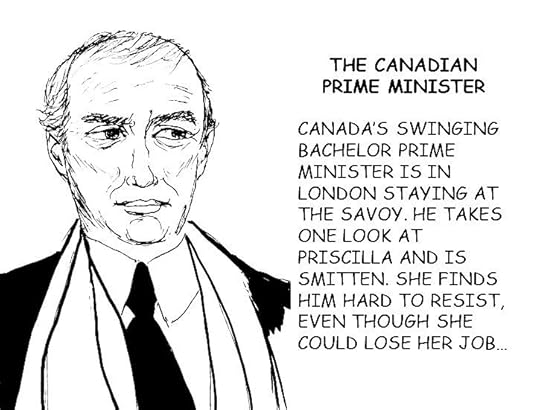 Younger readers may have to redline their search engines looking up all the Sixties stars who make cameo and walk-on appearances, but the history lesson will be rewarding. Those who remember the Sixties will cackle with satisfaction at the fictional resurrection of so many global celebrities whose careers proved it’s possible to be famous for more than fifteen minutes. Among them is Canada’s youthful bachelor Prime Minister, Pierre Eliot Trudeau, who sweeps Priscilla out of a star-studded Savoy cocktail reception and out of her Mary Quant mini-dress for a five-star one night stand.