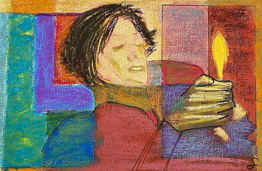 Pastels and markers on canvas-paper, 12×16