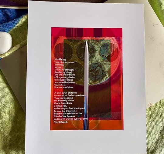 An alchemical combination of digital collage, hand-painted art, and epic poetry.
