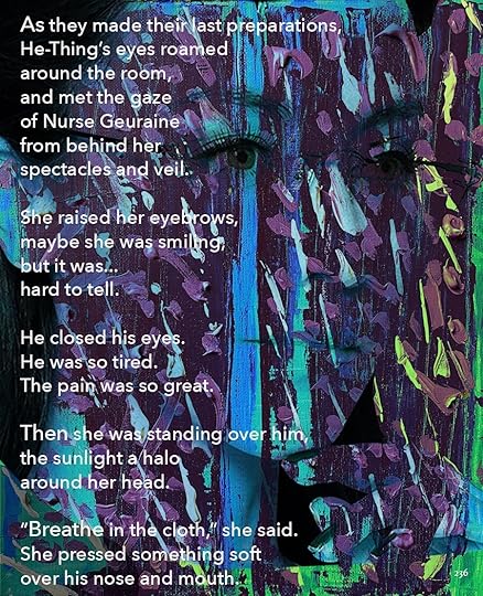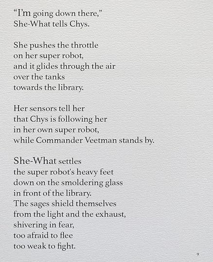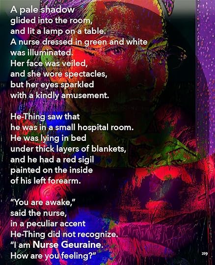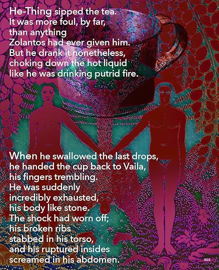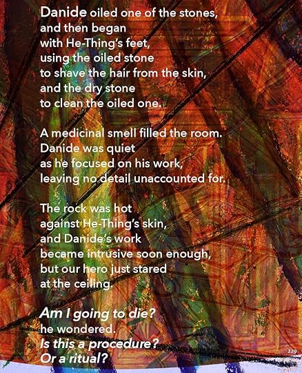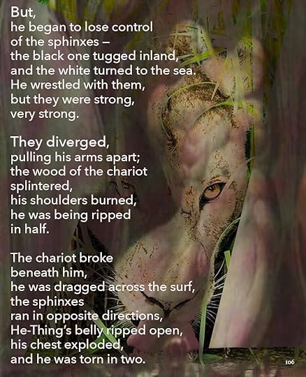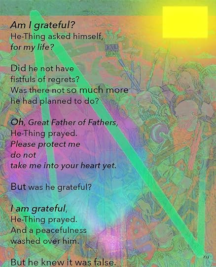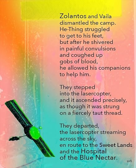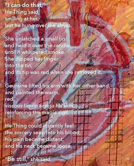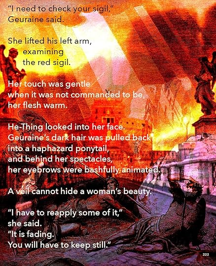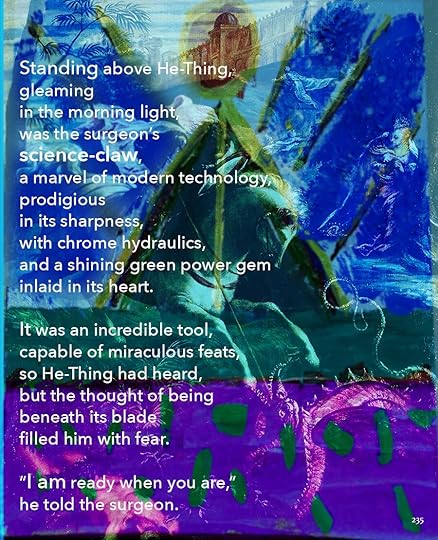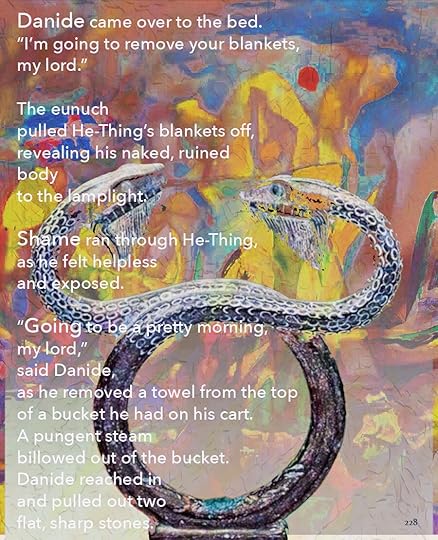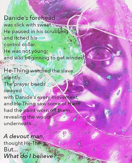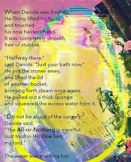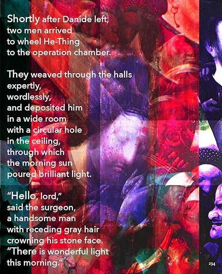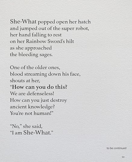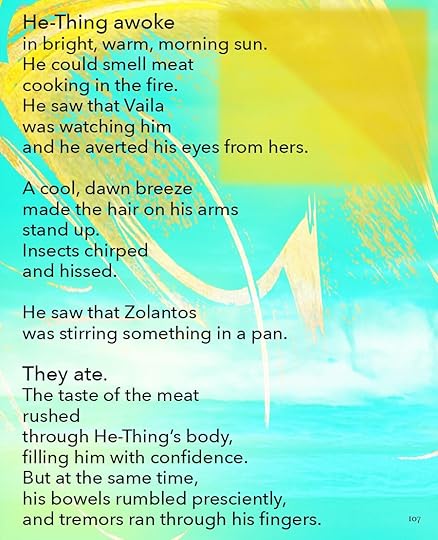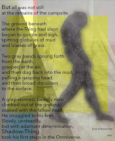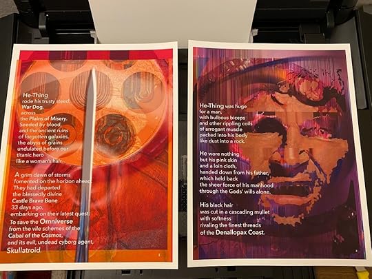This is going to be the approximate size of the print version, 8.5 x 11. As you can see, I’ve made the text a lot smaller, and the images themselves are a little different size. Seeing it on paper helps me think about it a lot differently. I bought a printer.