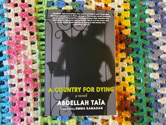 Currently reading – A Country for Dying, by Abdellah Taïa, translated by Emma Ramadan. Born in 1973, Taïa is a Moroccan writer who lives in France. This slim novel tells the story of two Moroccan prostitutes in Paris.