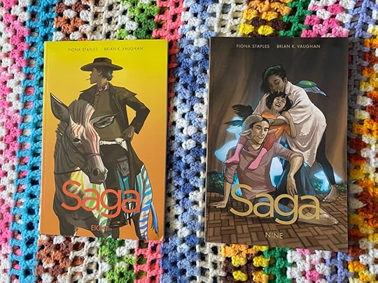 Currently reading – Saga, Volumes 8 and 9, by Fiona Staples and Brian K. Vaughan. Decided to finish this series once and for all.