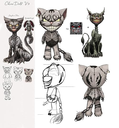 cheshire cat, Plushy design, omri koreshCAT. the problem with designing this guy as a plushy is that he doesn’t actually fit to BE a plush. his head is huge, his body is too small and thin and having a metal frame inside of him will make him so un… cuddly so what’s the point? this is the last version that American showed. He already went though more changes but he said something right, the factory needs to create a sample to see wtf will come out of him. Perhaps in ORANGE?