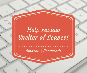 Honest book reviews are important. They help readers decide what to buy, and they help authors reach more readers. If you’ve read Shelter of Leaves, I’d appreciate your posting a review to my Amazon Author Page, Goodreads page, or both. Once on my respective author pages, you’ll see where others have posted their reviews. Here is a link that includes guidelines for writing a review.