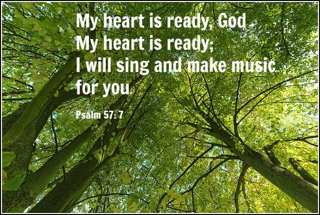 My heart is ready, GodMy heart is ready;I will sing and make music for you.Psalm 57:7