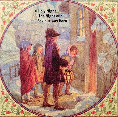 Margaret Tarrant Christmas Card - "Carol Singers"'Long lay the world in sin and error pining. Till He appeared and the Spirit felt its worth. A thrill of hope the weary world rejoices, For yonder breaks a new and glorious morn.'
