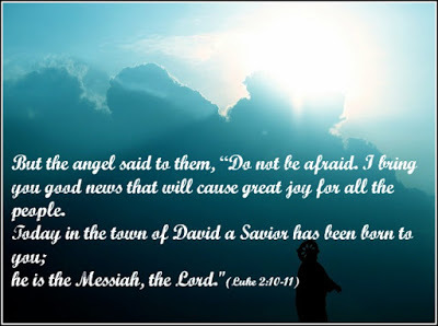 But the angel said to them, “Do not be afraid. I bring you good news that will cause great joy for all the people. Today in the town of David a Savior has been born to you; he is the Messiah, the Lord."(Luke 2:10-11)