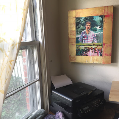 I am lucky to have a mother-in-law who is a beautiful and talented artist.She made this portrait of my husband which I positioned near my studio window.