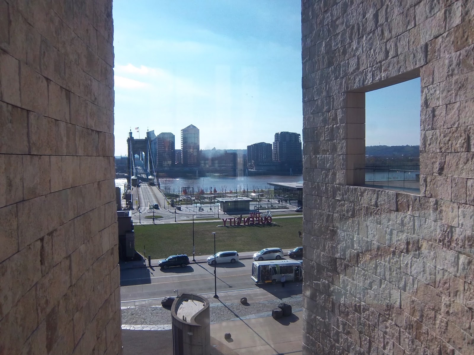 view of Ohio River seen from the museumSince Cincinnati was the first place on the northern side of the Mason-Dixon Line, across the Ohio River from Kentucky, it was the first place that runaway slaves came to in their pursuit of freedom. As such, it’s a perfect place for this museum to be housed. The museum’s permanent exhibit has a great mix of videos, still exhibits, and interactive exhibits allowing the visitor to experience this excruciating time in American history. It also includes exhibits of struggles for freedom going on today.Right now, there are two temporary exhibits well worth the visit. One was an exhibit about slavery still being practiced now in 2017. The struggle for freedom never ends and it was good to be reminded of it. The exhibit includes discussion on human trafficking, children forced into grueling labor and unable to escape, as well as slavery being practiced today in the 21st century in Libya and other parts of North Africa. It is a shocking reminder that we can never become complacent and think that the fight for human dignity is won and done.