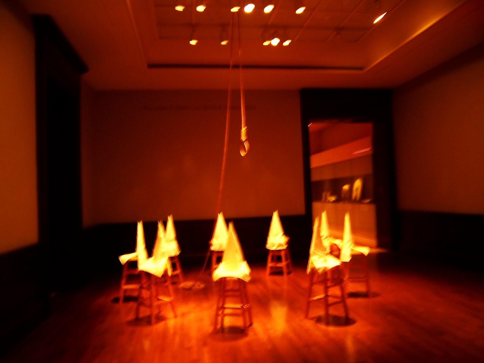 Branded HeadWhen I thought we had seen the whole exhibit, we were directed to the last picture. As we walked into the, I looked and was speechless. In a bare room in which a circle of pointed Ku Klux Klan hats are sitting in a circle, another hangs from a noose reminiscent of lynchings. Once again, we’re reminded that the fight isn’t over. We left the exhibit breathless.