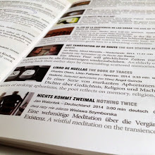Además de las películas en concurso el Festival seleccionaba películas en torno a distintos temas. Mi videopoema En silencio, basado en un poema del mismo nombre, se presentó en Mundos Paralelos, una sección enfocada en la narración de los detalles de nuestro entorno que ocurren fuera de nuestra conciencia. La segunda pieza, Libro de huellas, incluida en Estrujando el cerebro, que recoge nuestras preocupaciones con el pasado, nuestras dudas e inquietudes espirituales, la hicimos para el poeta Ángel Guinda. En ella Guinda reflexiona en una serie de aforismos sobre la memoria, la religión y el poder. Como participante fue un placer ver mis obras en una pantalla grande con un magnífico público y a los directores que viajaron a Berlín invitados hablar acerca de sus películas y a contestar las preguntas de los asistentes. A pesar de algún error técnico la calidad de las proyecciones y el sonido fue excelente y casi todas las películas extranjeras fueron subtituladas en inglés. También las mesas redondas tenían traducciones simultáneas en inglés y alemán.