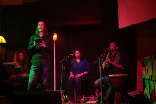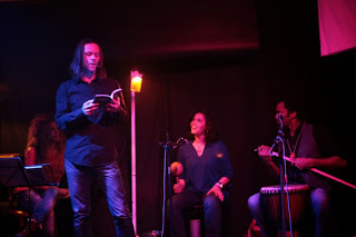 Fotos del recital poético musical Zumbidos con Charles Olsen y Lilián Pallares acompañados por los músicos William Carreazo y Denisse Ariza en el Círculo, Cuenca.