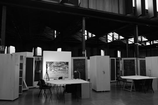 To start the ball rolling I am continuing work on a large cityscape I began some ten years ago as I get a feel for this huge space and the activities going on in it; the way the light changes during the day, the sound of the heating like a distant aeroplane at take-off, the buzz during the regular morning workshop with people with learning disabilities, the rain on the high roof.