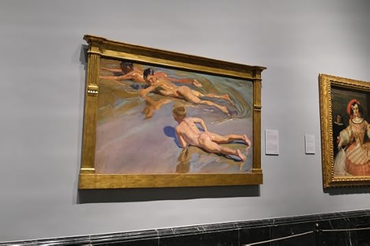 In the Prado there are many representations of the children of wealthy patrons, princes and princesses in ornate clothing, but also pieces such as Boys on the beach (1909) by Joaquín Sorrolla, painted al fresco on the Valencian coast, which captures the freedom and sensuousness of children enjoying the sun, sand and the wash of the waves. When I was their age I would have gone to a beach on the Otago peninsula in the South Island, New Zealand, with a more turbulent sea, very different from the Mediterranean.