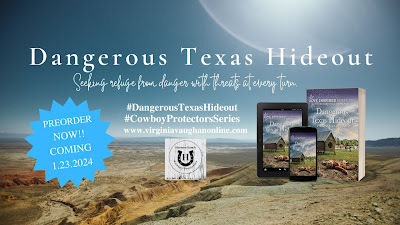 New Release- January 23rd! Dangerous Texas Hideout (Cowboy Protectors Book 3) by Virginia Vaughn