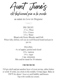 In Love in Disguise, the two main characters, Emilie and Thad, are both fond of pie a la mode. It plays a prominent part in the book, especially during Emilie and Thad’s courtship. My inspiration behind the dessert? My aunt’s famous, old-fashioned pie a la mode recipe, which is a family favorite.