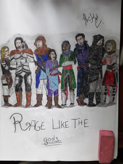 So NaNo has begun, and Rage Like the Gods has basically consumed my life. When I'm not writing, I'm brainstorming (to keep up with the fact that I am actually pansting this novel and need to come up with scenes on the go), when I'm not doing either of those I am drawing my characters. My calculator is getting quite a bit of use trying to figure out word counts, and I think I may drive my close friends and family mad with how much I talk about where I am at or where I am stuck in my writing. With...