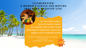 Illumination:A 3-month women’s circle and mastermind for stepping into Your Creativity and your Possibilities while tuning in and trusting in your Divine Feminine WisdomDid you know your dreams statistically have a 92% better chance of happening when shared with a group with accountability? That’s why women’s circles are so powerful…Love this!
